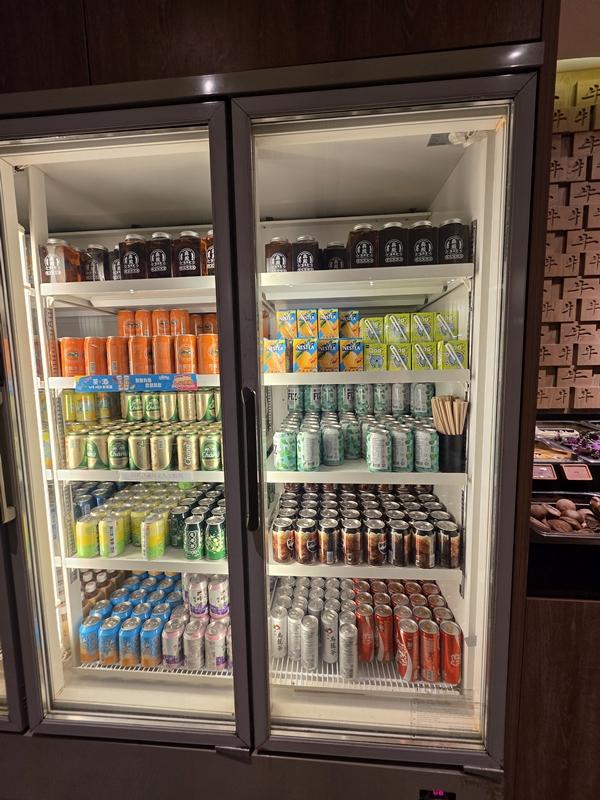 飲品方面有熱茶、自家製冷泡茶、各種罐裝飲品、紙包飲品、兒童飲品、有氣果汁、有氣水、泰國啤酒等,源源不絕地供應。