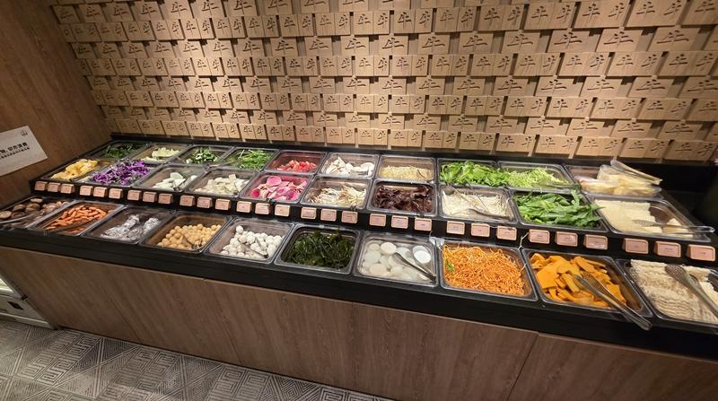 自助區還有多達30款火鍋配料,食物整齊又新鮮,有新鮮翠綠蔬菜、清甜脆嫩紅心大根、爽口蟲草花、羽衣甘藍、花生芽、麵類等等,好多選擇;真的跟要吃素食的朋友來到,也不用擔心。