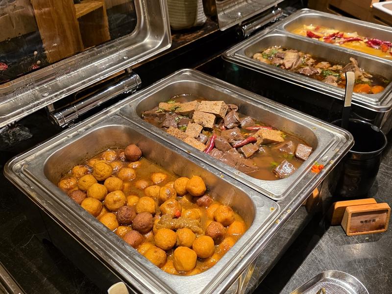 另有幾款台灣美食在自助區,如麻辣鸭血豆腐、滷豬腳、茶葉蛋、咖喱什錦、紅燒牛肉、酸菜魚,每款都好入味好夠味,滷豬腳骨肉易分離,滿口是黏黏的膠原蛋白。