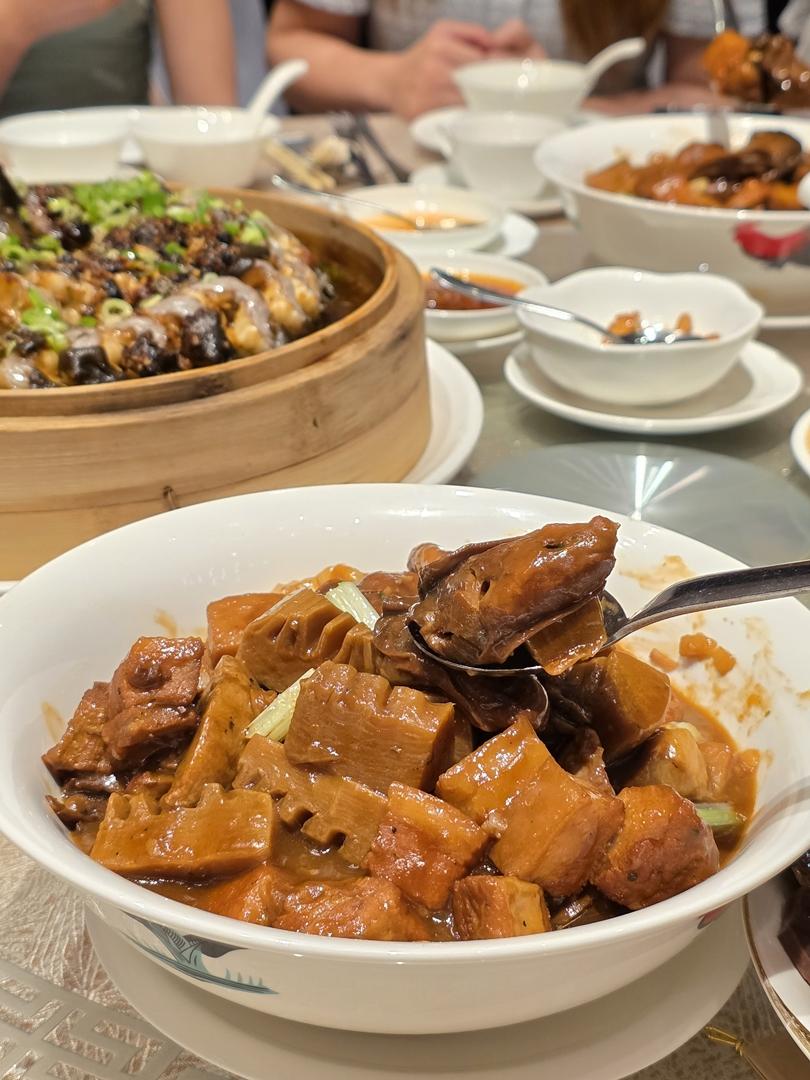選用生曬蠔豉、厚肉花菇、爽脆冬筍和脂香五花腩,以先煎後燜的傳統技法烹製,色澤誘人,味道像極圍村盤菜風味,尤其愛蠔豉的海洋鮮味及五花腩。