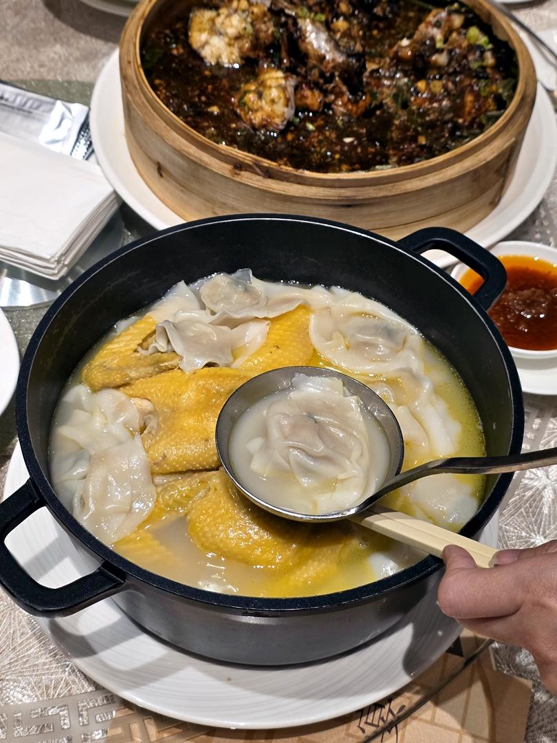 搭配原隻鮮雞佐以醇厚黃酒與時令津白,以傳統砂鍋慢火烹製,再放入精選皮薄餡鮮的雲吞,鮮甜清甜,喝出食材的原汁原味。