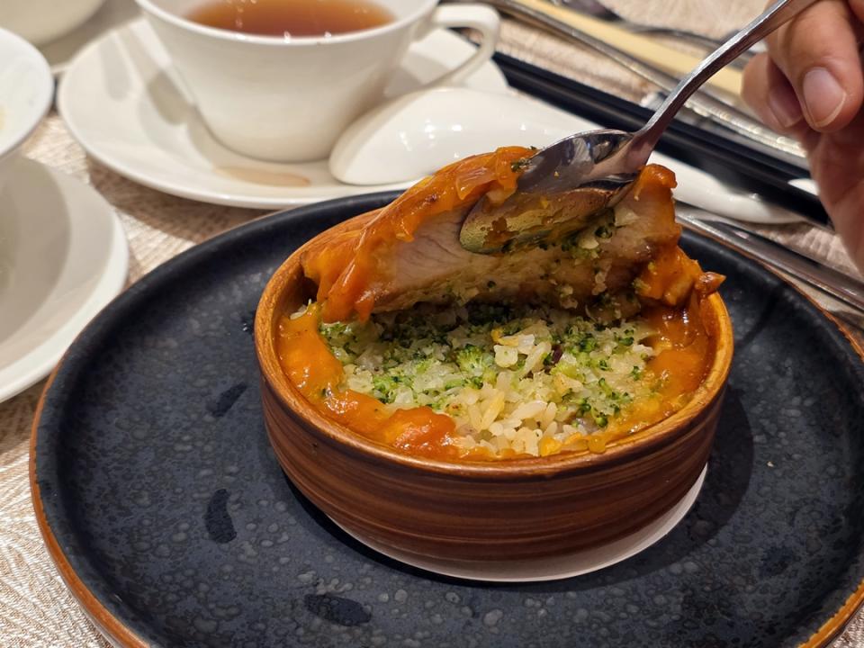番茄醬汁酸甜濃郁,而豬扒則肉質鮮嫩,在炒飯中加入西蘭花碎,令豬扒飯增添了蔬菜的香氣。