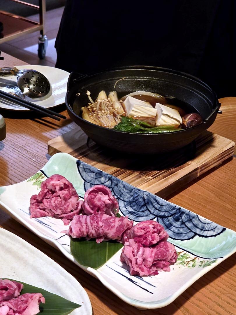 選用日本國產奈禾牛,油花分佈細緻,放入昆布高湯中慢煮,以昆布帶出肉汁,入口肉嫩香濃,份外滋味。不吃牛的,可改選西班牙黑豚腩片,肉身帶有輕輕的橡果味,配合鰹魚清湯,更突顯肉味。