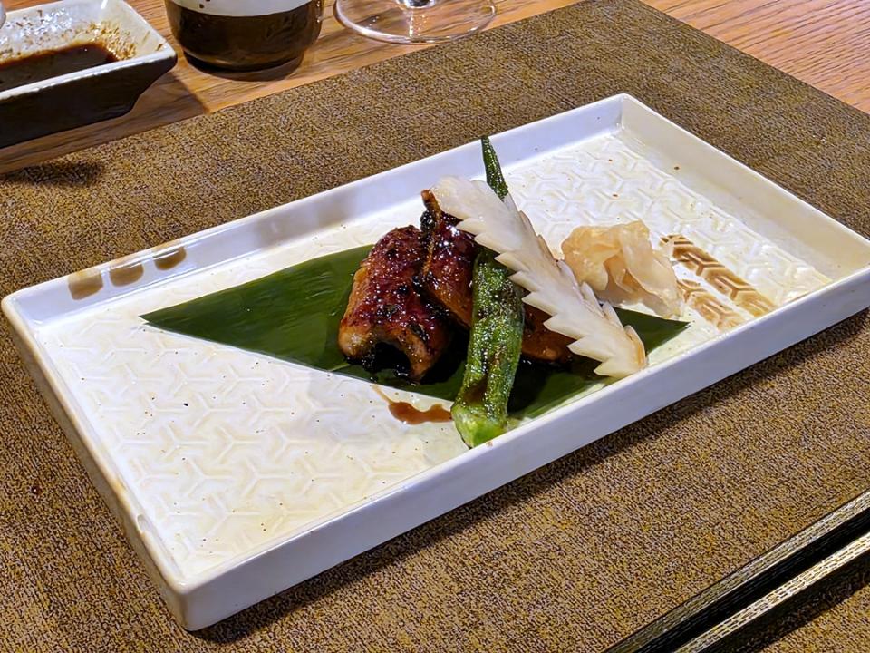 產自日本的鰻魚,肥美肉厚,大廚以傳統日式蒲燒做法,將原條鰻魚燒烤,再塗上自家調製的油汁,香濃惹味,還細心配上子薑解膩呢﹗