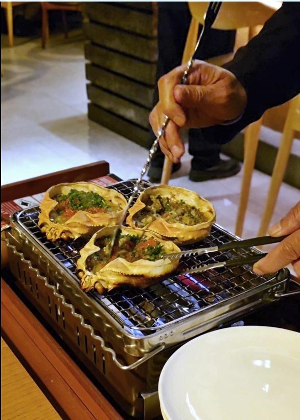 以盛合端上甲羅燒,賣相精美;客人可選擇自行燒爐,或像我一樣喜歡坐著等食的,就交給餐廳職員在桌旁即席燒烤啦﹗