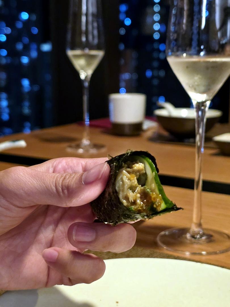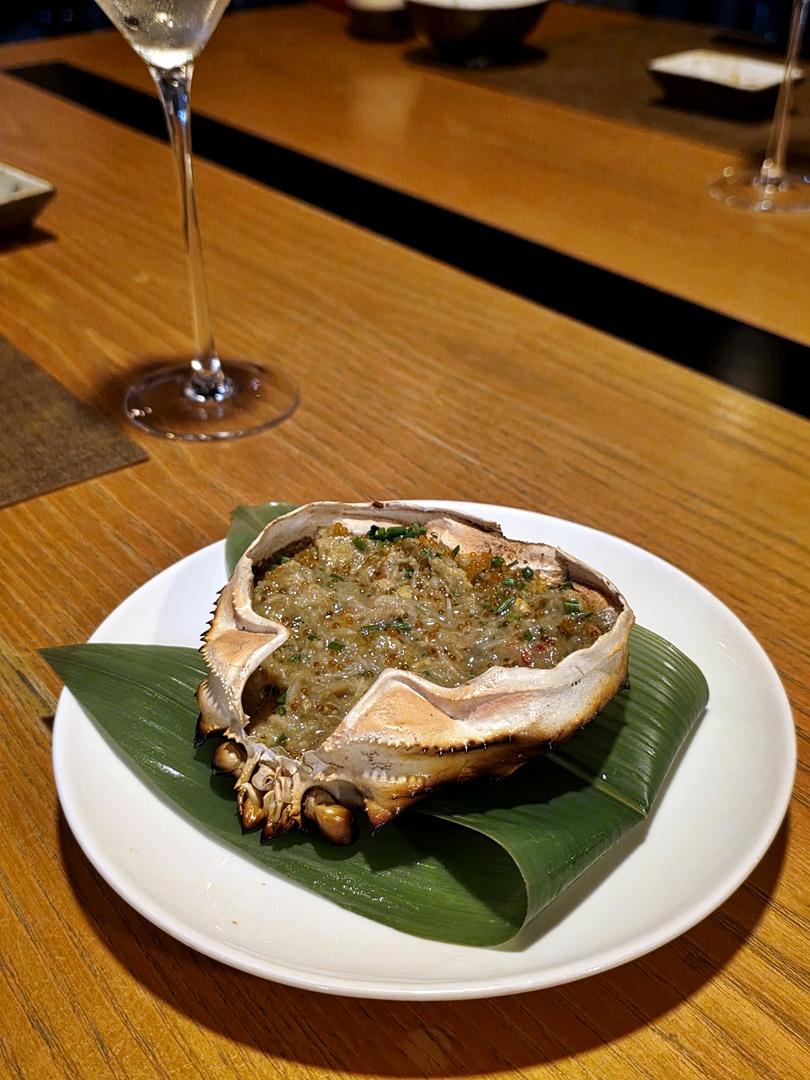 大廚預先把蟹膏以味噌調製放入蟹殼中,加上精選之日本蛋黃一同拌勻慢烤,那香氣實在誘人,這甲羅燒的調味非常和,並沒有鹹鹹的,鹹鮮甜恰恰好,可搭配脆多士或紫菜享用,甚有風味。