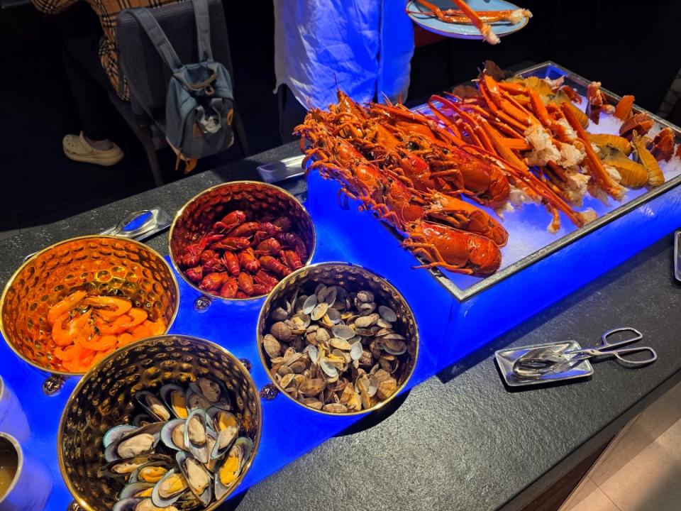 多款冰鎮海鮮無限量供應,包括波士頓龍蝦、 琵琶蝦 、蟹腳、小龍蝦、青口及麵包蟹 (星期五、六、日、公眾假期及其前夕供應)等,定能滿足海鮮控。