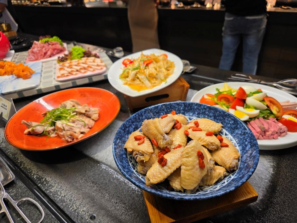 今期精選冷盤有酒香迷人的醉雞翼、 雞絲粉皮、 南京凍鴨、 水晶肴肉等;另有芝士及凍肉拼盤、各款新鮮沙律菜等。