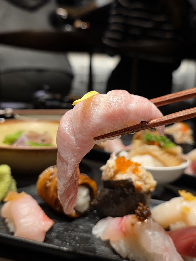 吞拿魚中腩魚油豐富,入口即化,非常鮮美;口感細嫩的海鰻包著壽司飯,這樣入口更有層次感。
