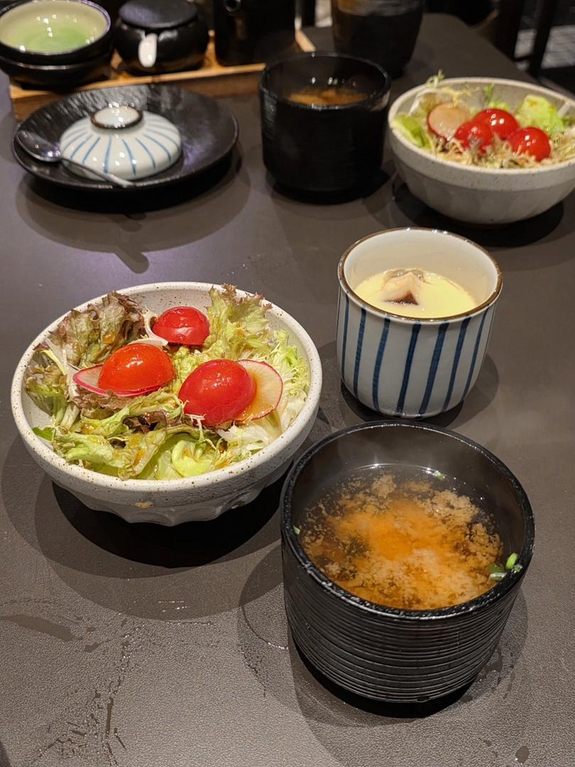 餘下四品就是清新爽脆沙律、日式海鮮茶碗蒸、麵豉湯及甜品,這晚的甜品是紅豆小丸子。