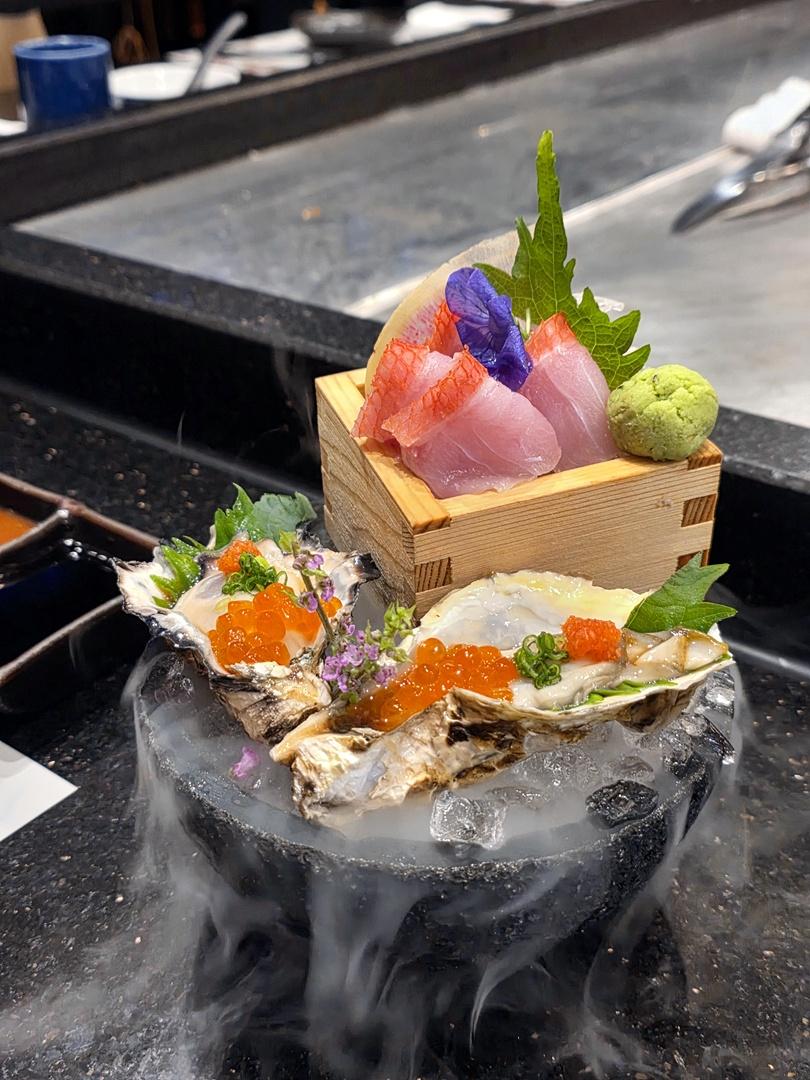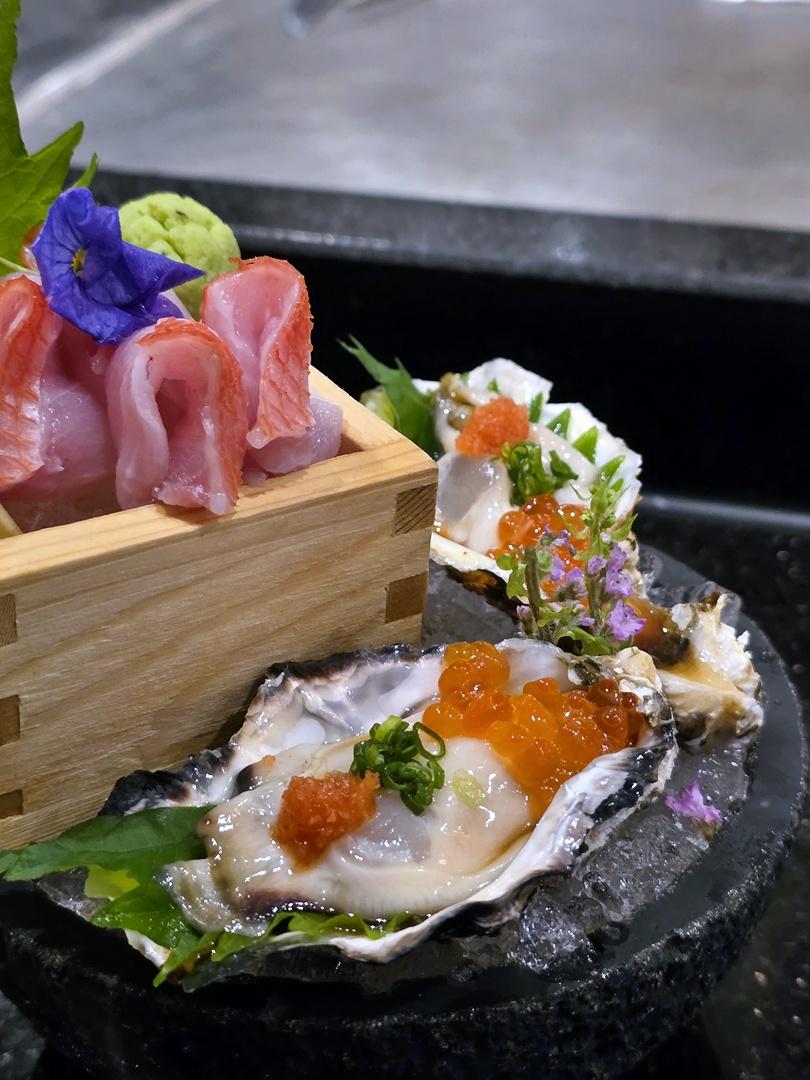 接著是金目鯛刺身及日本室津生蠔,鮮氣登煬,金目鯛刺身肉質粉嫩細膩,味道鮮味;室津生蠔搭配鹹鮮魚子,絕對是錦上添花。