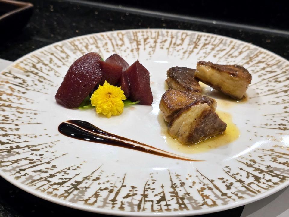 另邊廂,師傅已在準備匈牙利鴨肝配紅酒燴梨,鴨肝煎至外層焦香內滑嫩,油脂豐富好香口。