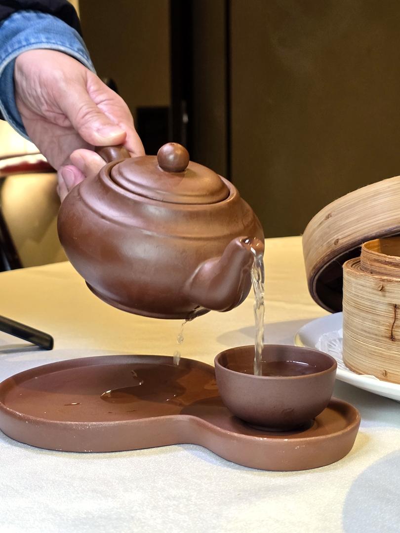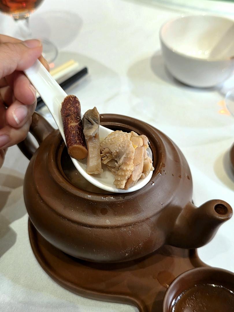先來個湯品暖身,五指毛桃響螺湯,搭配瘦肉雞肉慢火細煨,湯汁濃醇鮮美,清甜潤喉,別小看這茶壼,好像永遠喝不完一樣。