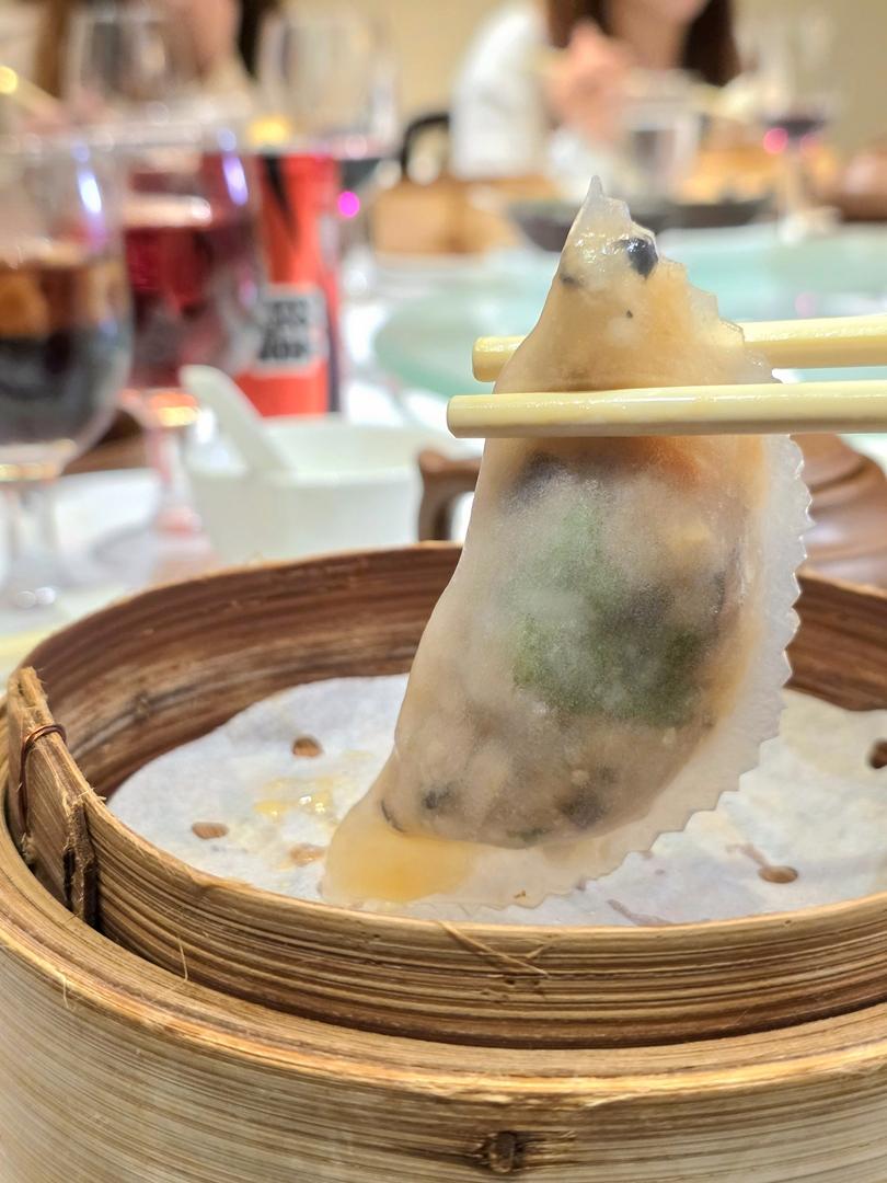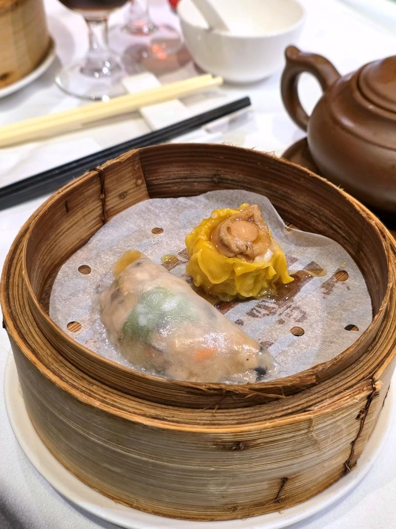 經典懷舊六姐粉果,以馬蹄、沙葛、甘筍、芫茜等作饀料,鮮爽彈滑;而爽彈的燒賣則是雙重鮮味,升級懷舊點心。