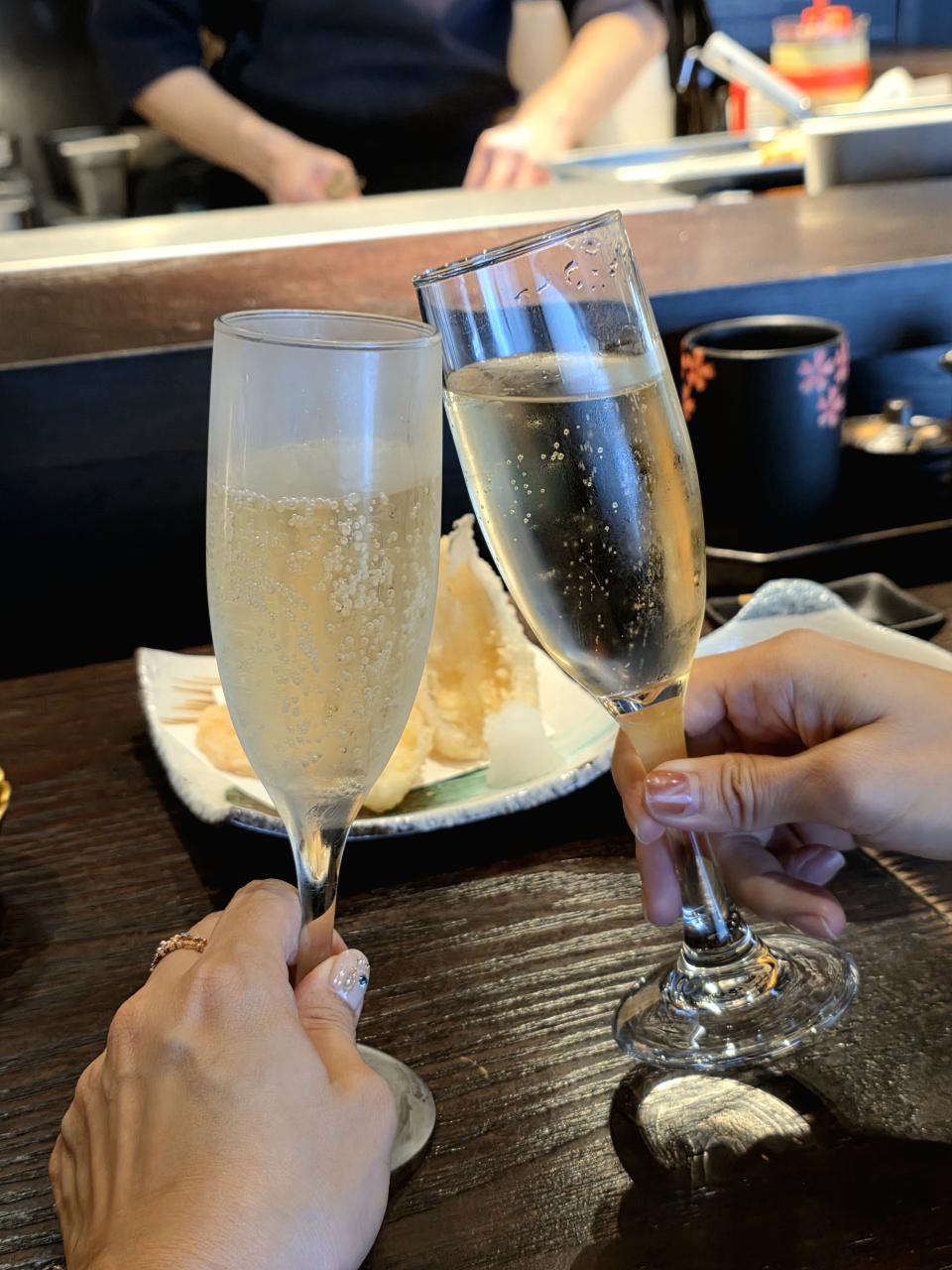 串燒搭配清酒,是最地道的居酒屋風情﹗朋友也來杯氣泡酒升級體驗。