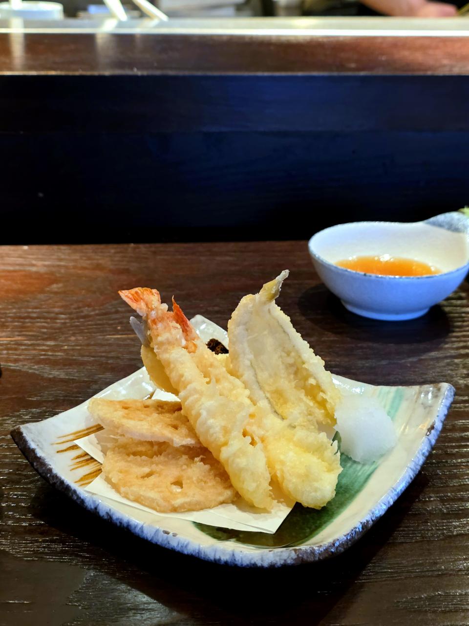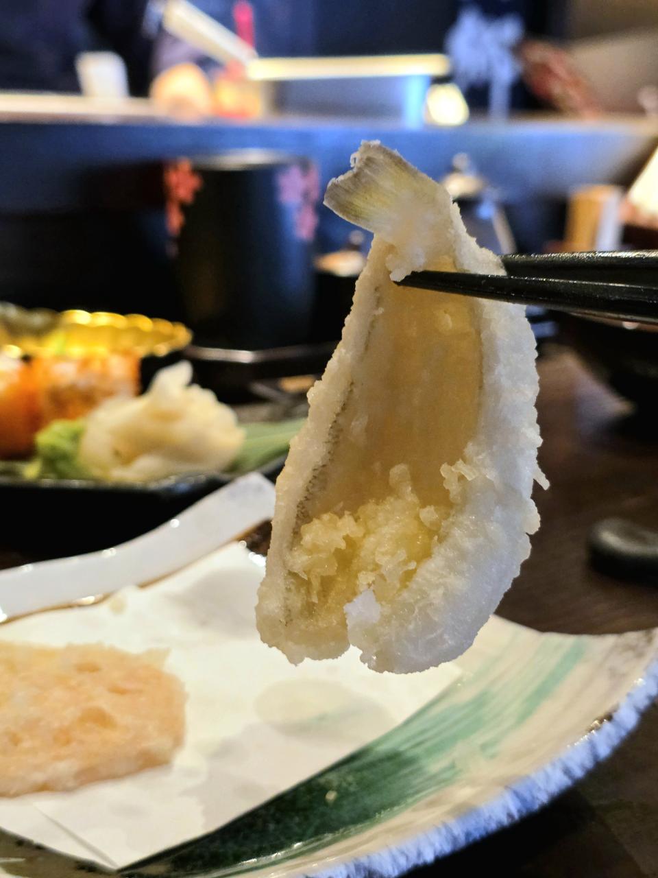 這天有蓮藕、沙𩺬魚及海老,粉漿酥脆不油膩,尤其愛吃沙𩺬魚,外脆內嫩。