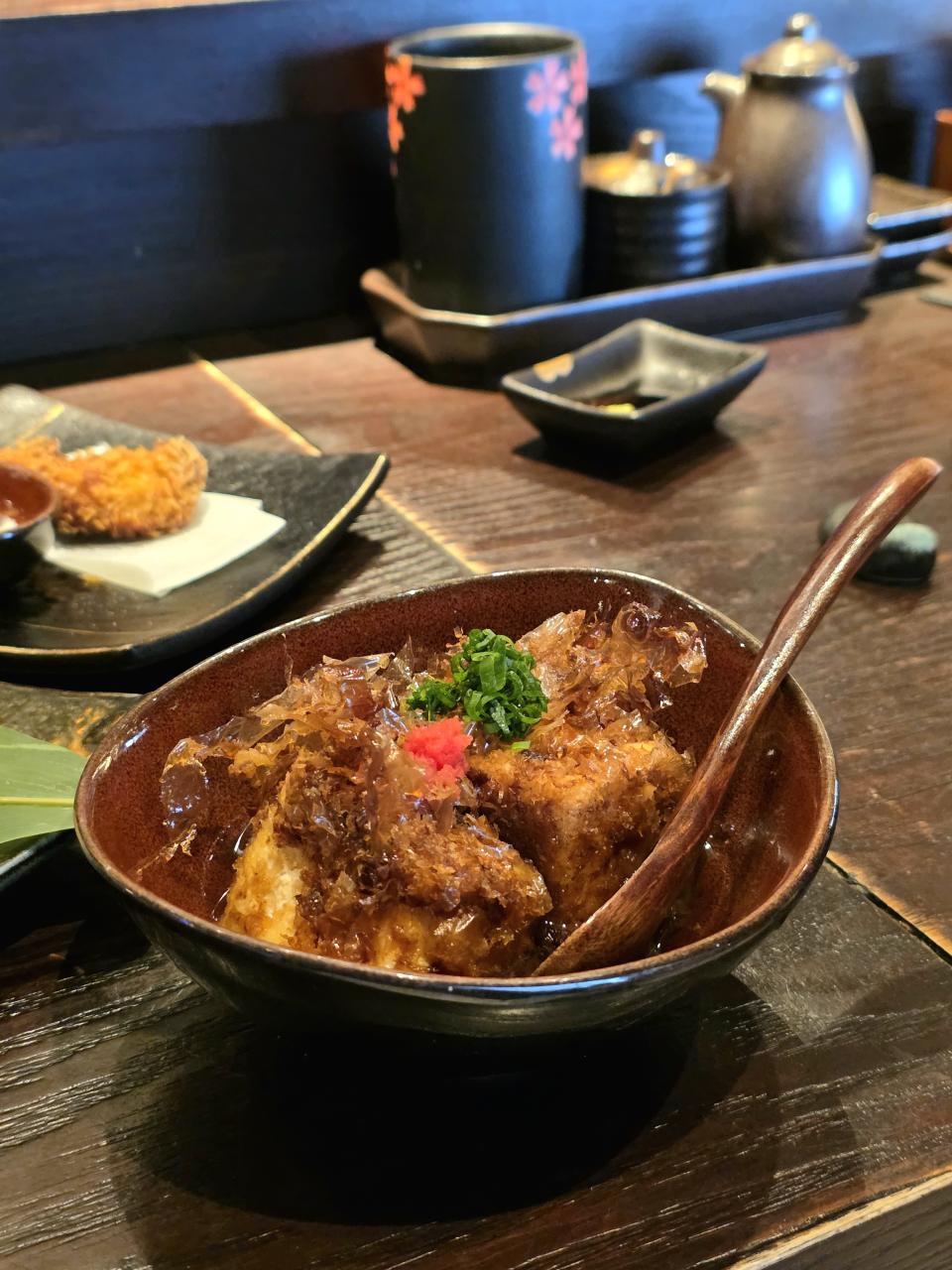 土佐豆腐是最具風味的日式料理,外酥內嫩滑,夾著木魚花一起進食,超入味。