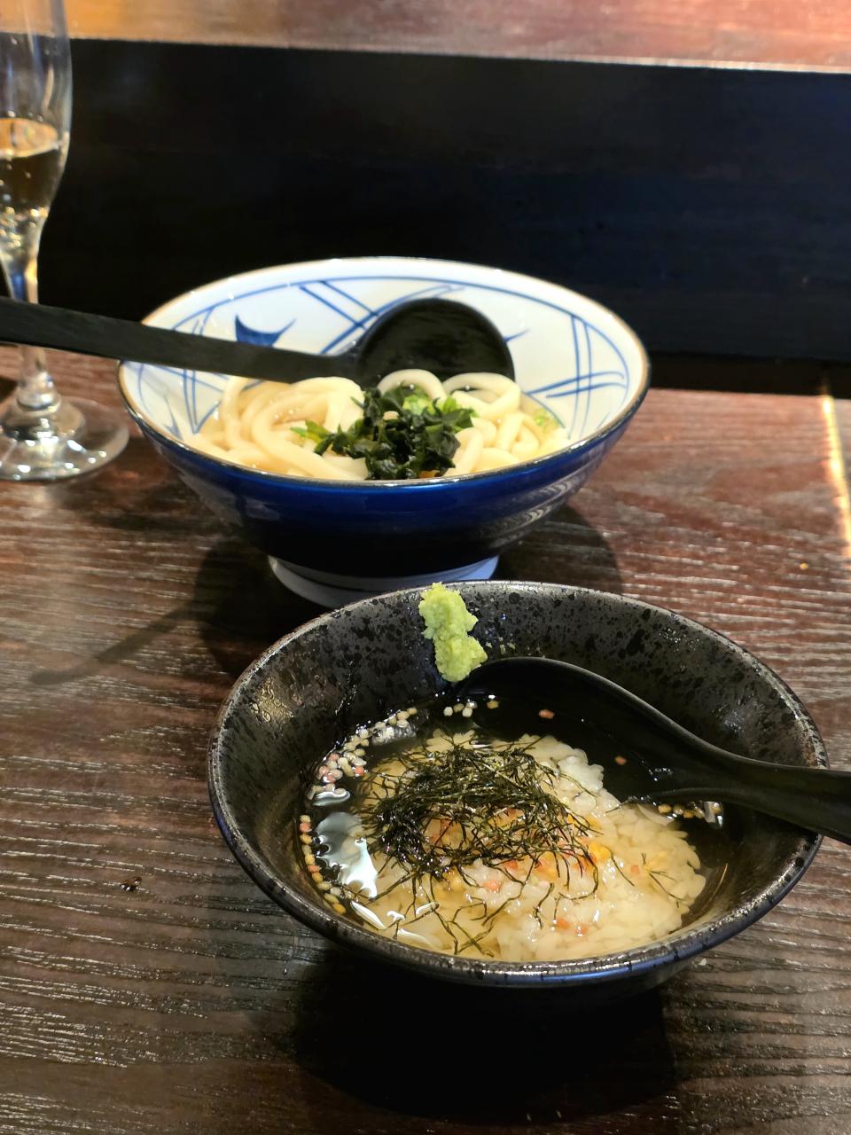 正好跟朋友各點一款來試試看,茶漬飯及木魚湯烏冬,茶漬飯是以熱綠茶加柴魚高湯澆在熱飯上,豐富茶漬的味道,湯香飯軟,每口倍感暖意。