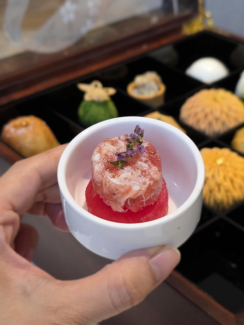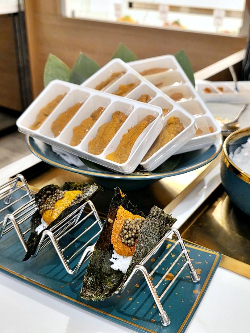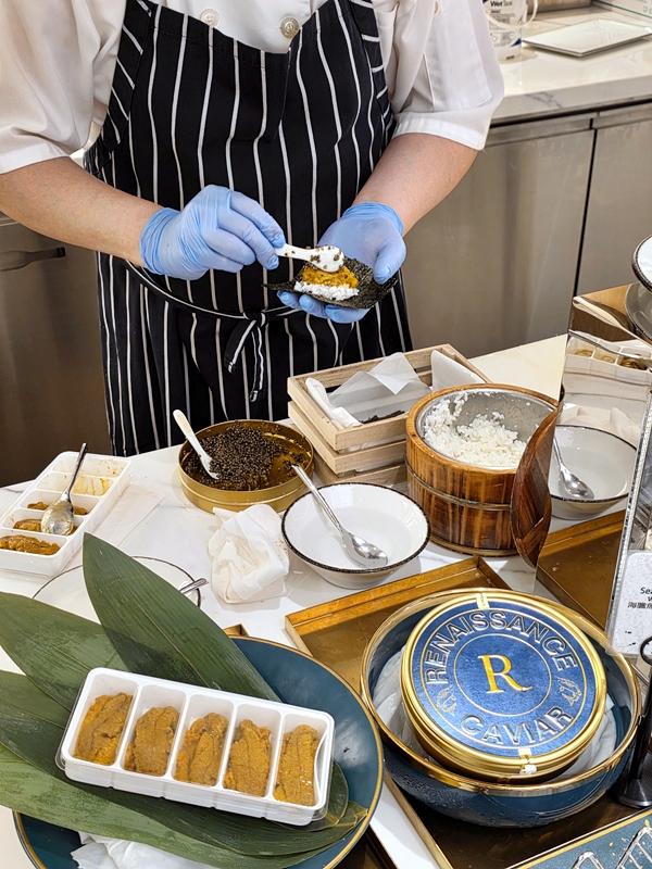 食材更以可持續購為原則,如MSC或ASC認證的海產及非籠飼雞蛋等,主打海膽、魚子醬、新鮮龍蝦及和牛菜式,源源不絕地供應,可以任意品嚐;廚師即場製作海膽魚子醬紫菜塔可,那種鹹鮮的美味令人回味無窮。