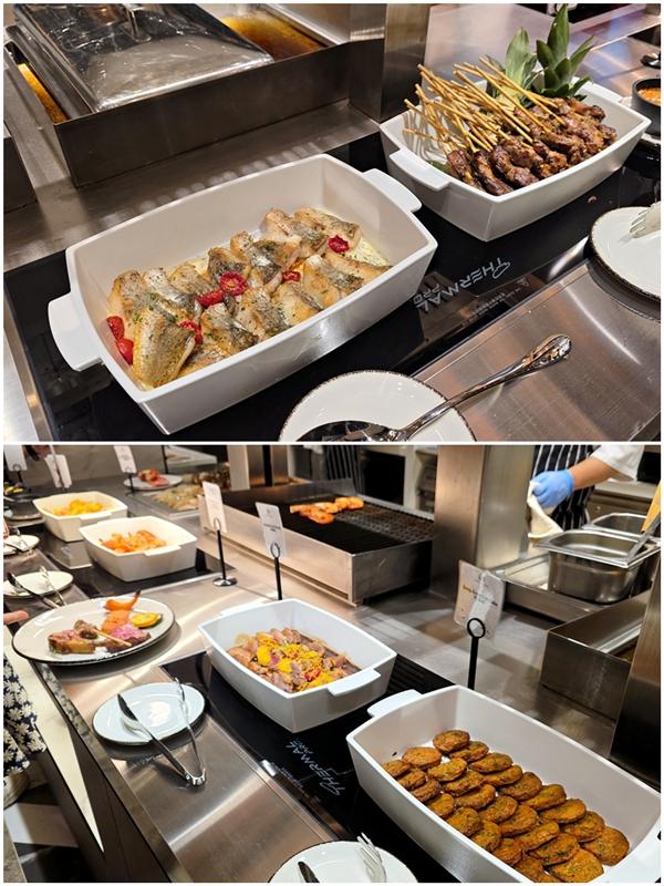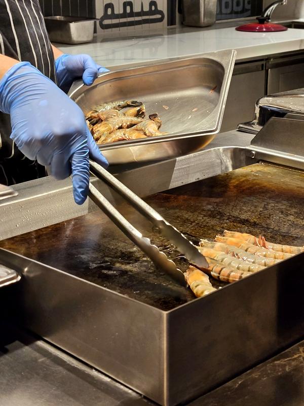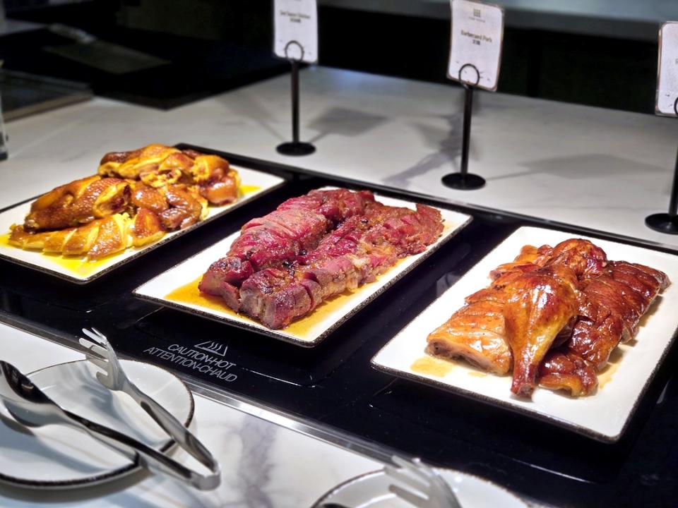 烤肉區有烤和牛牛板腱、烤牛肋排、香烤原隻澳洲羊腿、原隻香脆乳豬,乳豬肥瘦中,烤得皮脆肉香。鐵板燒一區有燒虎蝦串、煙肉串、香焗三文魚、海膽意大利飯配油封番茄。