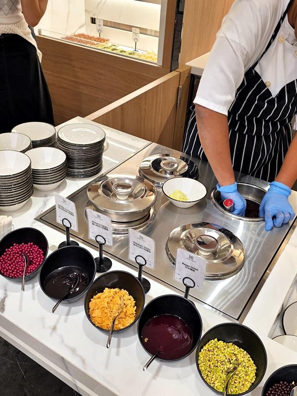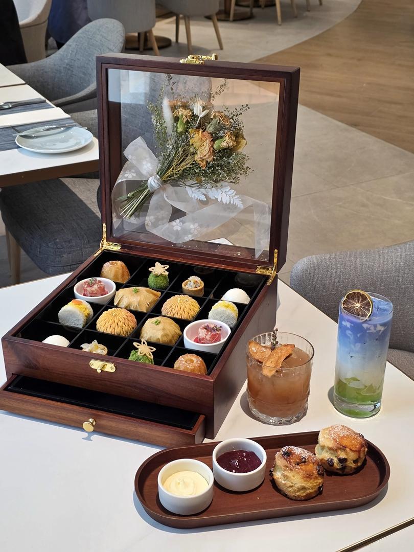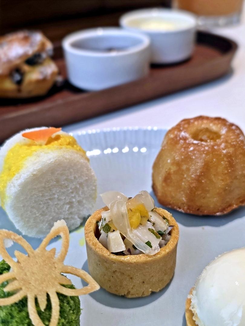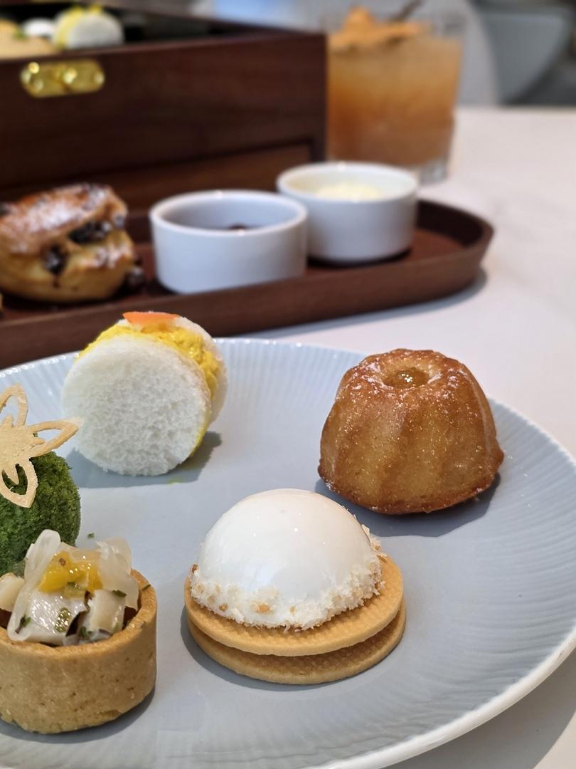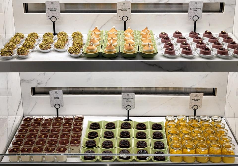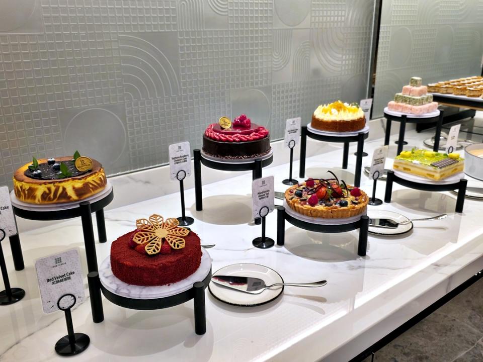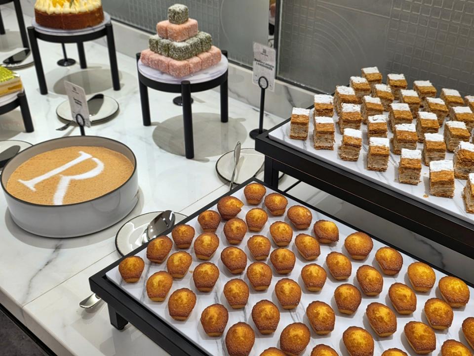 甜品方面同樣令人垂涎,包括巴斯克芝士蛋糕、 Valrhona 紅桑子朱古力蛋糕、抹茶及士多啤梨林明頓蛋糕、檸檬蛋白撻、開心果泡芙、拿破崙蛋糕、芒果布甸、瑪德蓮蛋糕及 朱古力撻等。